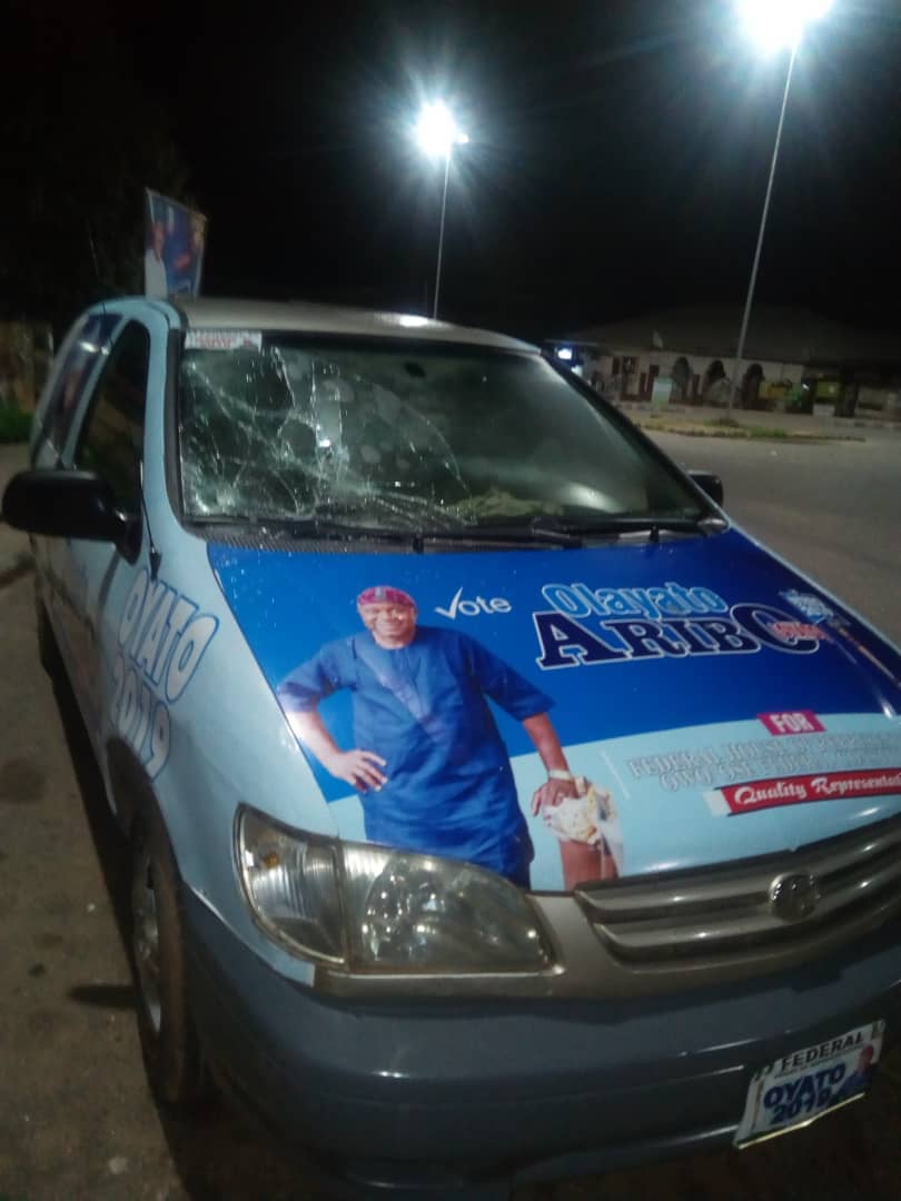 The political supporters were said to have been lucky to escape the attack believed to have been carried out by political thugs, but the branded campaign vehicle they were in was not spared as it was set ablaze by the suspected hoodlums.