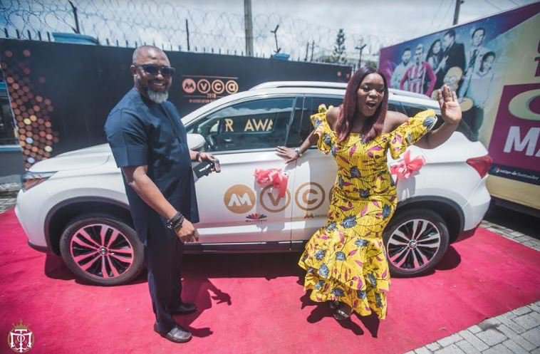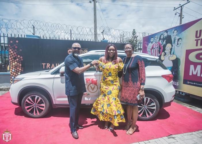 The entertainer received the GAC Trumpchi GS8 on Friday at the headquarters of Multichoice Nigeria, Victoria Island, Lagos.