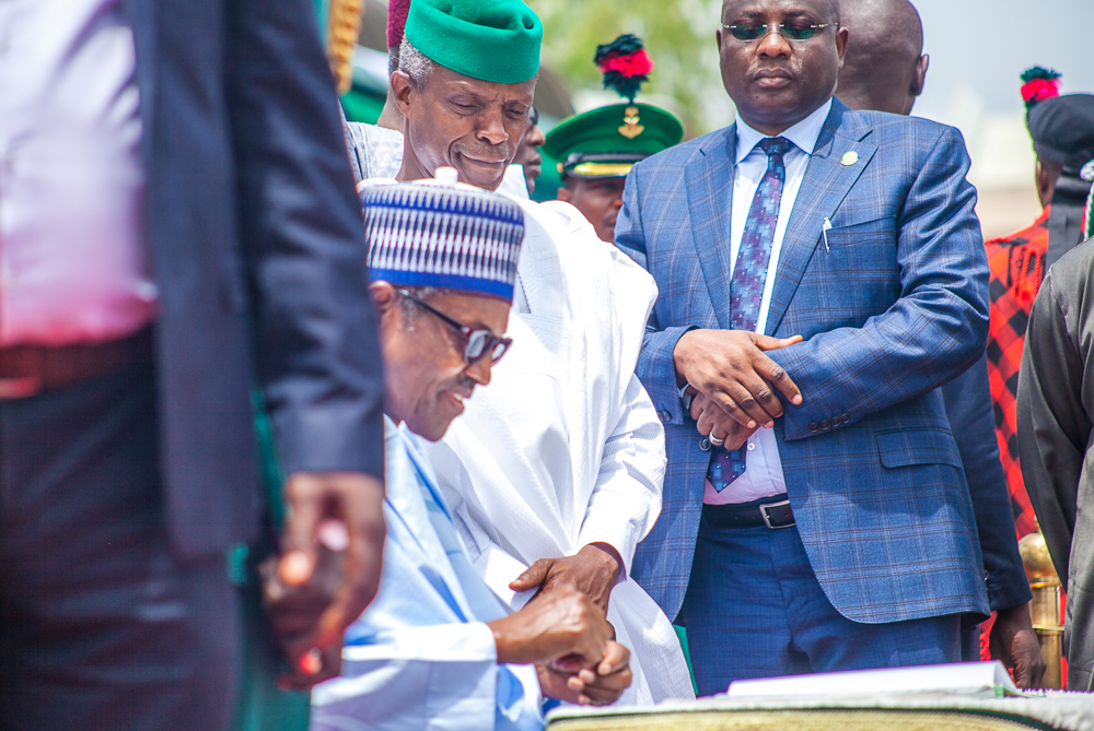 The strictly military event held at the Eagles Square, Abuja, was attended by President Muhammadu Buhari and Vice-President Yemi Osinbajo while the Saraki and Dogara were absent.