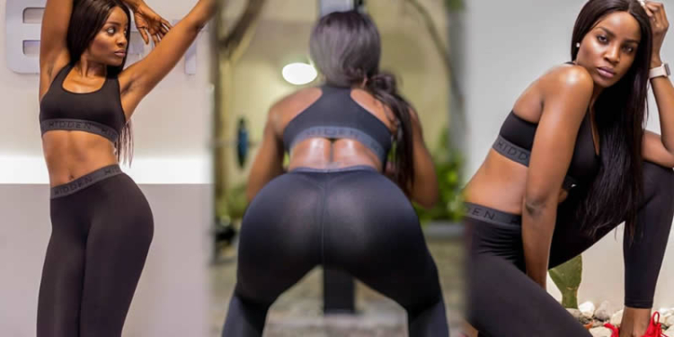 Singer, Seyi Shay took to her Instagram page to share these photos of herself flaunting her bare butt while posing in see-through leggings and matching Sports bra.