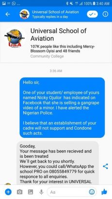 Nicky Ojiulorwho was accused of circulating a video of gang rape that was titled “We Have 7 Bedrooms and One Parlor”, the lady was reported to her school, Universal School of Aviation and the school has issued a statement on the circulation of the rape video by their student.