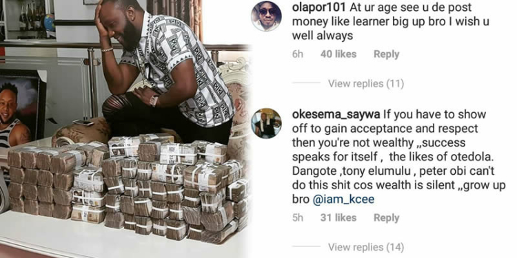 KCee shared wads of cash on Instagram following a sub from Soso Soberekon and Harrysong claiming that Five Star music label has fallen to One star. But rather than get the support of followers, KCee was called out for his behavior.