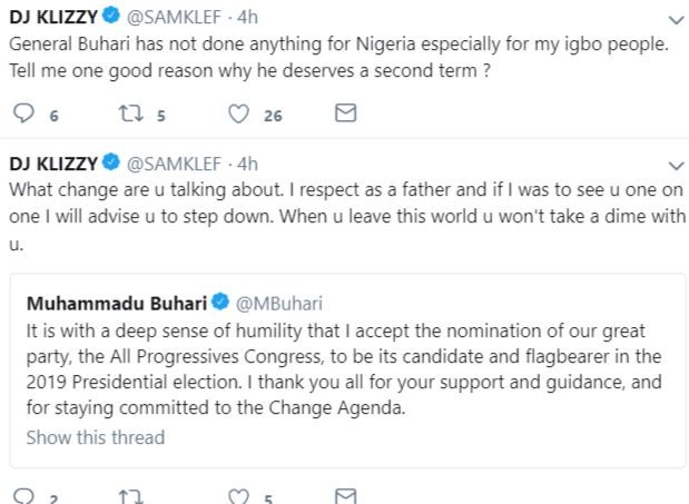 In response to a Tweet by President Buhari, music producer Samklef said,