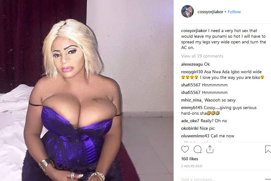 Cossy Orjiakor high sex libido has come to fore again as the actress says she needs really hot sex. The voluptuous actress revealed her present desires on her Instagram page.
