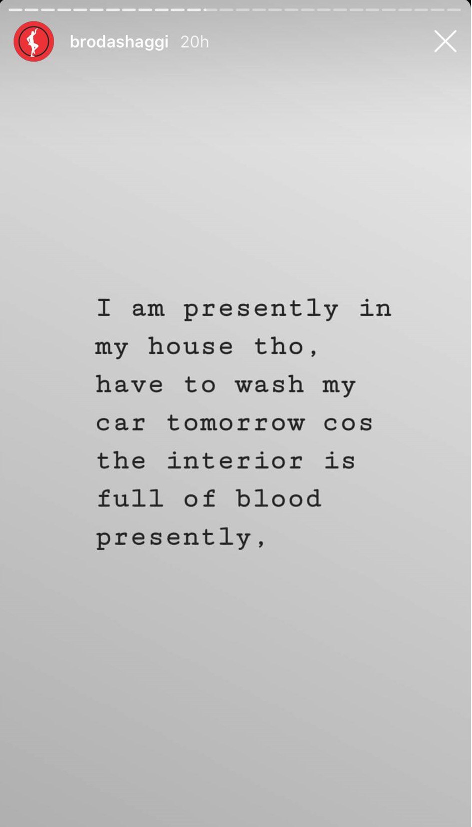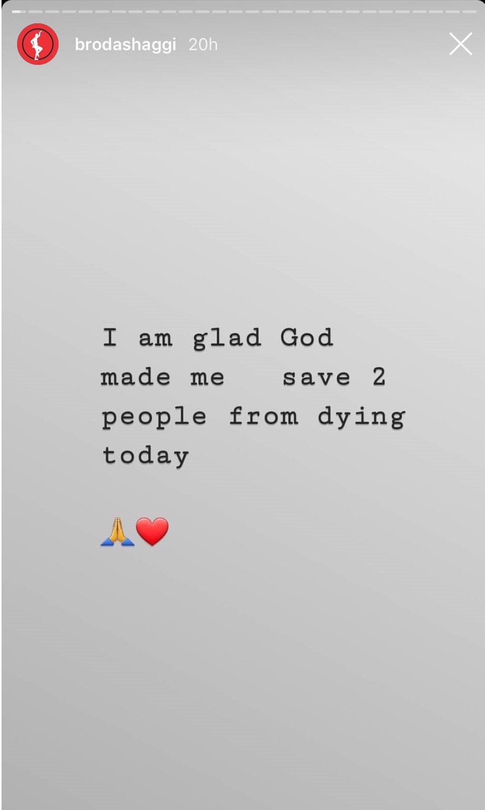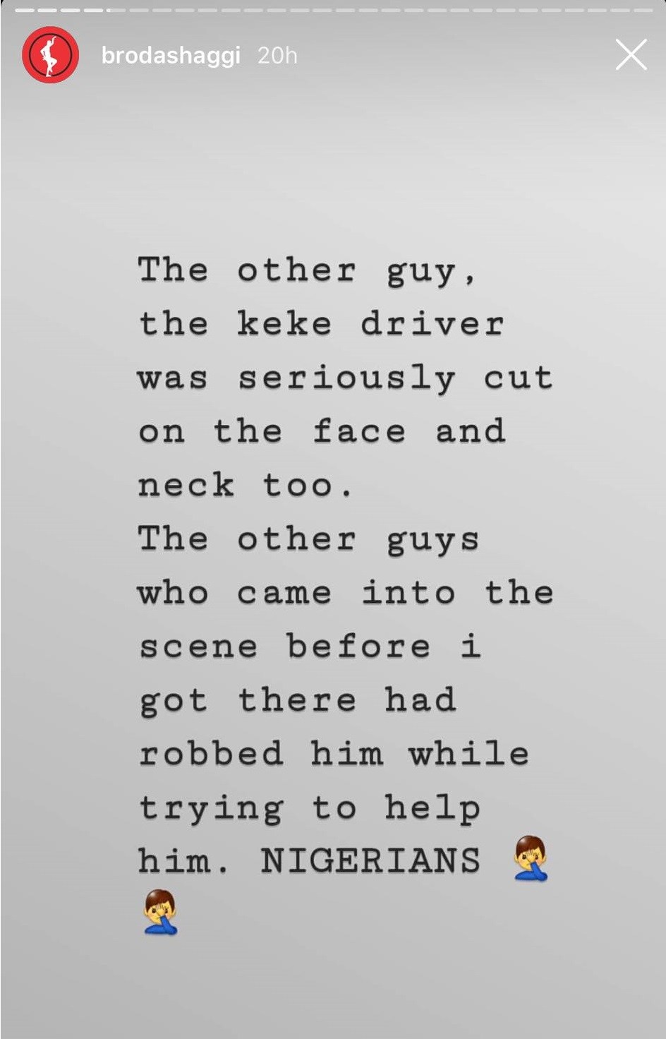 According to Broda Shaggi, he was scared at first to save the victims, but one of them, an old man was already loosing lot of blood, he had to take them both to a nearby hospital, to save their lives.