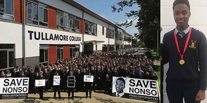 Students and teachers at Nonso’s school, Tullamore College, had protested outside Leinster House, and presented a petition to Minister for Justice Charlie Flanagan in an attempt to stop the deportation order, which was issued last June.
