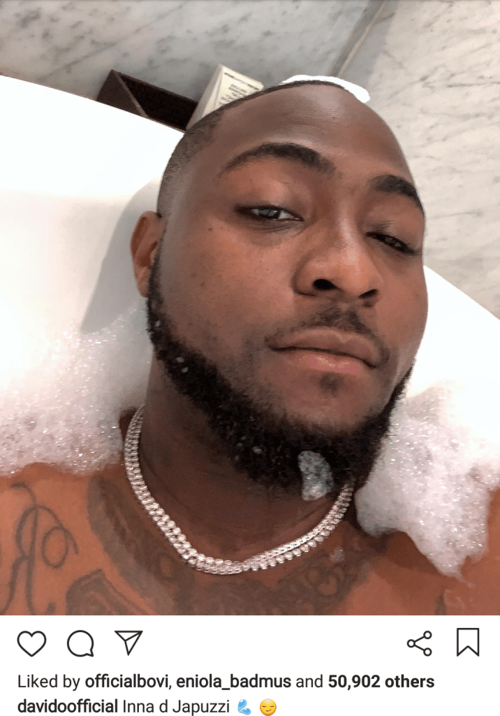 Davido shared a photo relaxing in a Jacuzzi which he called ‘Japuzzi” (Imitating Shatta Wale).