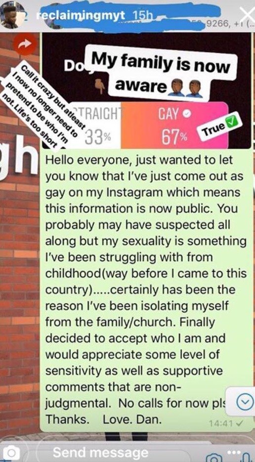 Dan Yomi, the first Nigerian black Student Union president of Bournemouth University, U.K, who came out as gay this week has revealed his family members are currently having a hard time accepting his sexuality.
