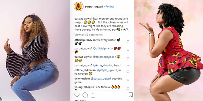 Curvy Nollywood actress, Pat Ugwu, has taken to Instagram to speak on sexual prowess.