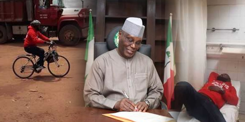 Uche Dubem, a Psychology graduate of the Imo State University, who rode a bicycle from Owerri to Abuja in support of Atiku Abubakar’s presidential ambition, has been hospitalised at the National Hospital in Abuja.