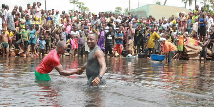He didn’t reveal where the lake was but his captioned showed that the people only came out solely to witness him in action.