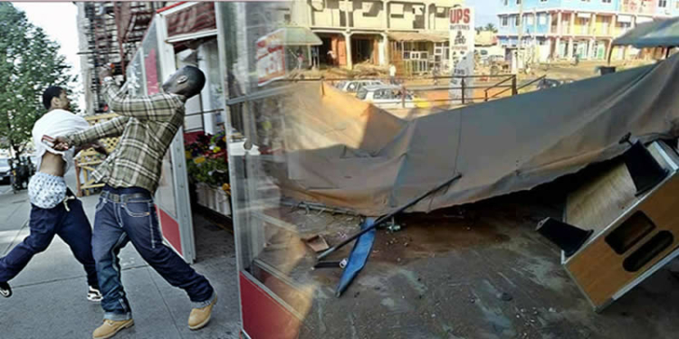 The bar was trashed and so was the Nigerian man who ended up bleeding terribly and had to be rushed to the hospital.