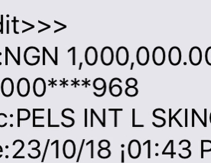 Dabota shared a screenshot of the chat between her and the skin care specialist. She also shared a screenshot of the bank alert she got after the 1 million was paid into her account.