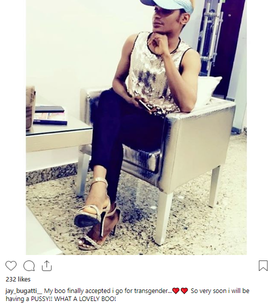 The popular crossdresser, who constantly talks about his boo and refers to him as “my husband”, said he will finally undergo the surgery to change his sexual organs from that of a male to a female.