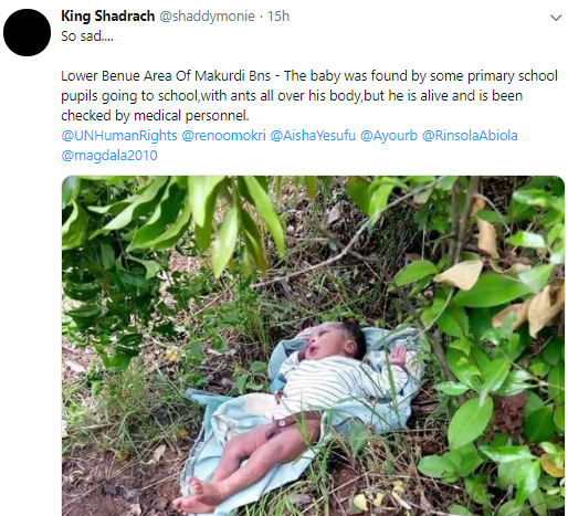 The child, a boy, had ants all over his body when he was found by primary school pupils on their way to school in Lower Benue Area.