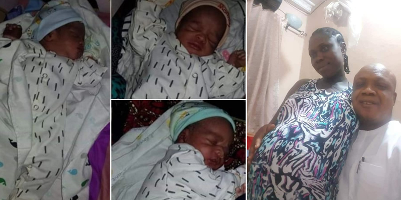 The man identified as Utseoritselaju Ayo on Facebook was very excited at the news of the birth of the children so he took to expressing his joy. He did this via a caption he shared. He also posted the photos of the man, his wife and the three lovely newborns as well.