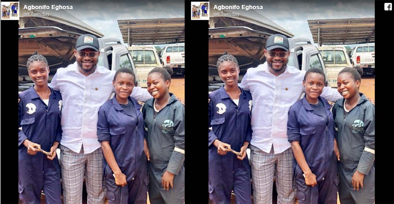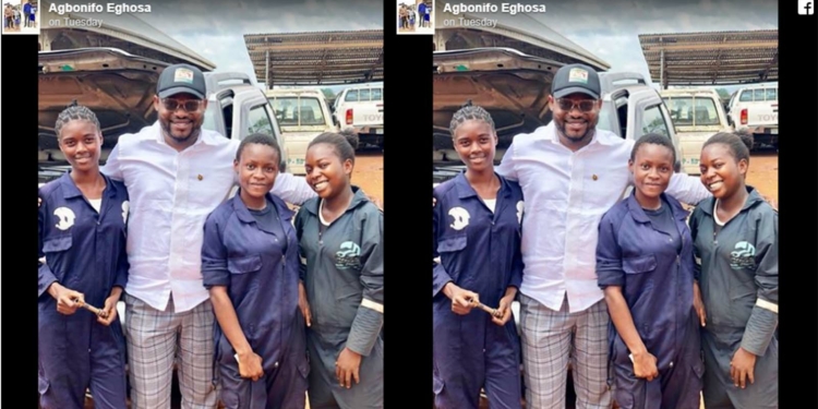 According to Agbonifo Eghosa, the ladies shuttle between going to school and their apprenticeship. He was quite pleased to the extent that he donated some amount of money towards their training. He wrote: “I took out time out today to get a reliable mechanic to fix my truck … I was directed by a friend to visit a place in my constituency. Getting there, I met these pretty young female mechanics. I engaged them in a discussion and to my great surprise, they shuttle between secondary school and apprenticeship. Before leaving, I donated to their training by providing money for the necessary tools needed to continue working.”