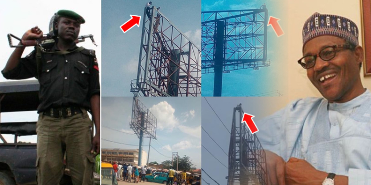 The man from Adamawa, identified as Faro mounted the mast on Wednesday to protest current hardship in the country, requesting President Muhammadu Buhari’s resignation within 24 hours and vowing to commit suicide if his requests are not met.