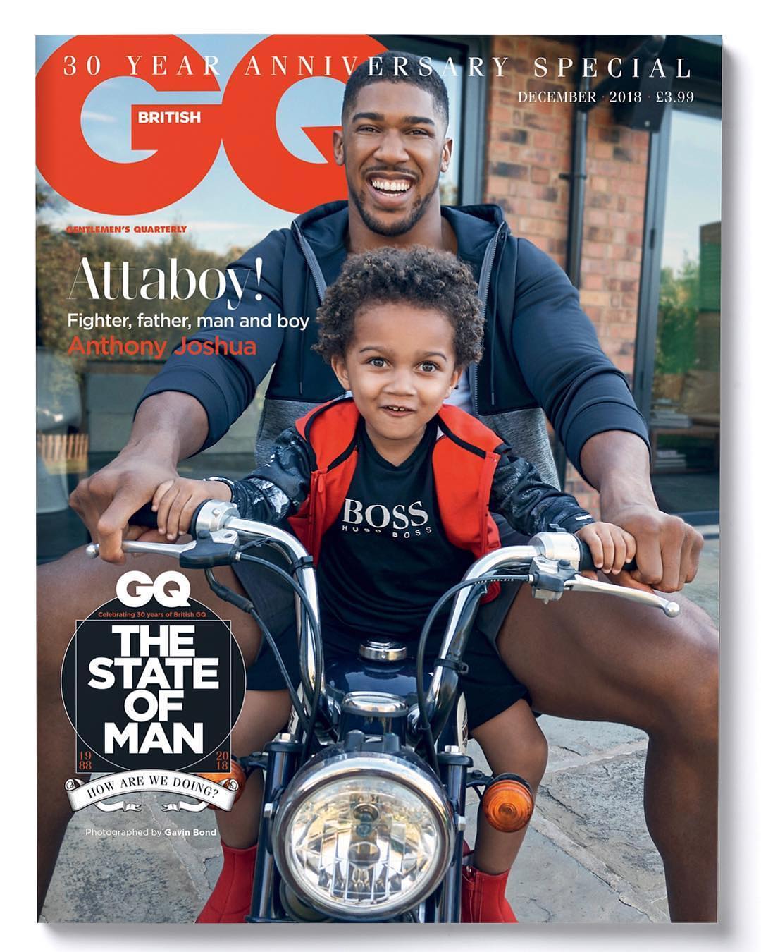 Nigerian-born British boxer, Anthony Joshua covers the December edition of GQ Magazine along side his son.