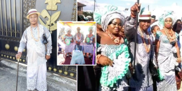 The brides identified as Miss Ufuoma Ozoro and Miss Oghale Andrew look happy as they wed traditionally. The grand ceremony took place at Uruwhre Quarter, Igbidi Kingdom, Isoko South local government area of the state.