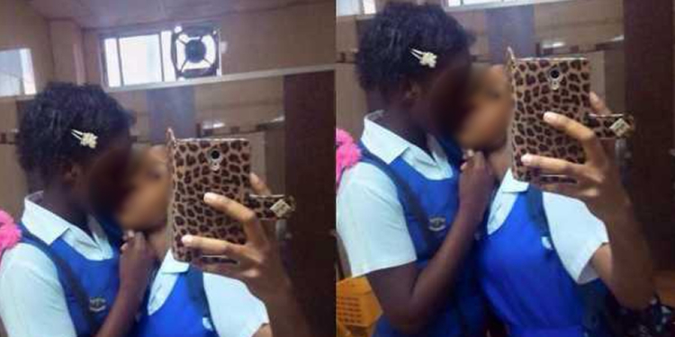 Two junior secondary school girls have come under fire after they shared an intimate photo of themselves on social media.