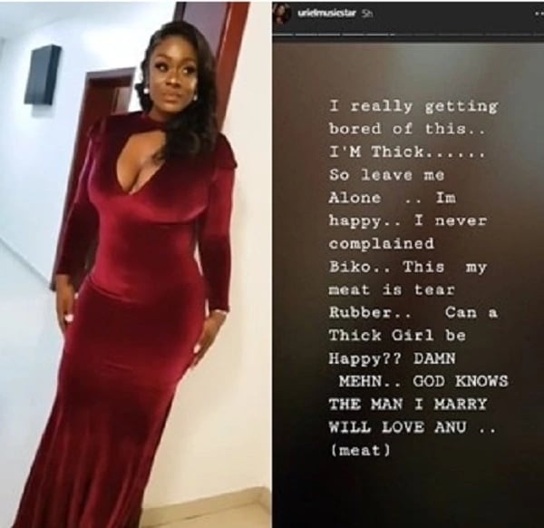 In a recent post, sent a message to her fans, when she expressed that she was tired of being body shamed as she’s happy with her body. She added that she’s destined to man who will love and embrace her curves and thickness.