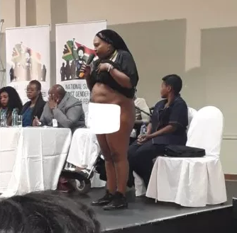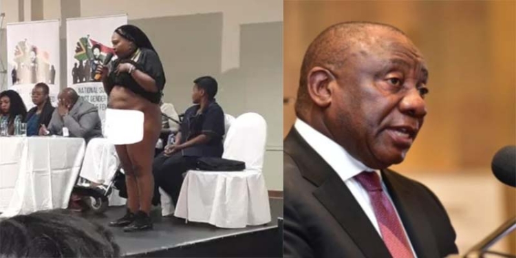 While speaking about how women are abused, raped, and murdered by men daily, Phindile stripped naked from the waist down to show President Cyril Ramaphosa that she too had suffered the same incident.