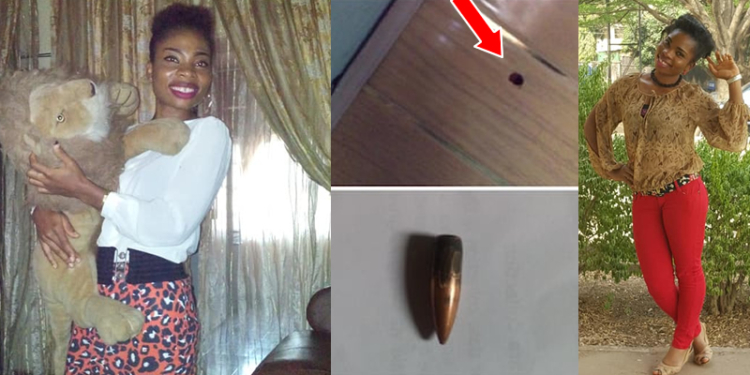 As she stood up to fix the curtains, Chinmoso revealed that she could not believe her eyes when she saw a stray bullet laying on the bed she stood up from. She began to trace the small metal and found out it came through the ceiling, pierced the curtain railings before hitting the mattress.