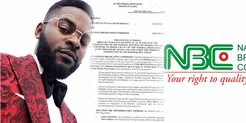 Folarin Falana, popularly known as Falz, has filed papers in court challenging the ban placed by the National Broadcasting Commission (NBC) on his song, “This is Nigeria“.