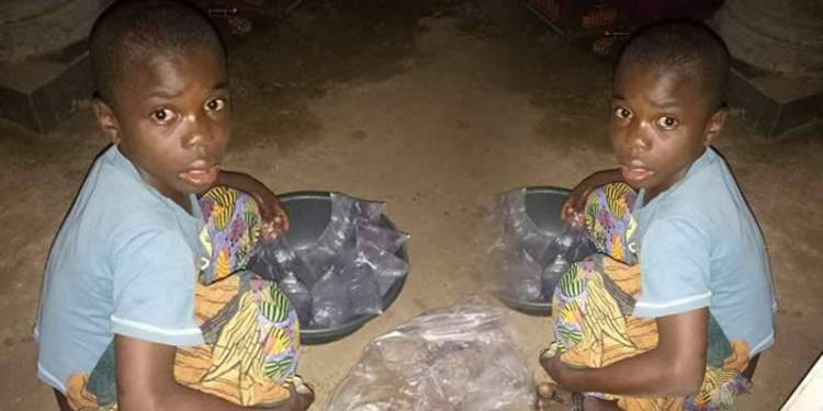“Contributed by uzoegwu louis. He couldn’t hold his tears. Who would blame him, – For he’s just a boy of about 12 years old. I have seen him before at this mini-mart, where I sometimes chill briefly in the evening before I headed home. The first time I saw him, he came to buy a bag and half of sachet water he hawks through the evening. And shortly after he left for the first sales, he came back to purchase another bag and half after he must had finished the first set of hawking. I paid no attention to him at first, maybe because he wasn’t the only child coming back and forth to buy a bag of sachet water to hawk. It was just yesterday, still in the same mini-mart, that the same boy came to buy another set of sachet water as usual. He bought the first set and left to hawk. I paid no attention still. After about thirty to forty minutes later or thereabout, he came back once more to buy another set. By then, I was already prepared to take my leave, and simultaneously, the mini-mart keeper (my friend) had already begun to shut down for the day, and If I’d recall succinctly, the time was barely 10 minutes to eight (7:50 pm). This time, I was alarmed when I saw him back for more. I pondered within myself – how can this boy still be outside at this time of the night, and having returned to buy more, I envisioned that before he sells out, the time will elapse pass eight or to nine. I told my friend, the mini-mart keeper, – ” I don’t think any living parent will allow their ward outside, at this time, in a cold weather, to come and be hawking ‘pure water’ at a busy Junction every evening.” Instantaneously, I called the boy inside the mini-mart for some find outs. Considering time lateness and the boy’s situation, I had to break the conversation, so i interjected. “Let him go, return his change and let him have the money for another trip of hawking. Give him snacks and a can of Coca-Cola drink”. I directed my friend. As she handed the boy the snacks and a can of Coca-Cola, I told him. Nna, sit down somewhere and eat them, once you are done, complete your sales and head home. I will see you tomorrow. With his already filled basin of sachet water on his head and the snacks given to him, he left. I took a picture of him while filling his basin, I wanted to take a Picture of him when he was crying but I couldn’t. I was emotional and I had thought to myself,–“who does that, taking a picture of an orphan child crying over his lost parents”. Since yesterday’s night through this day, I have continued to meditate on this boy and so many of his kind out there, who are being used in the name of maid or house help to slave for their masters and guidances. My thoughts are with him and with many of them out there who are suffering due to one inexplicable, unforeseen agony they found themselves in by fate. The shame is on those who uses a human being as a slave in the name of maid or house help. Soon, the wrath of the most high. And to the rest of us reading this, I hope we do more. This evening, I hope to meet him again, find out more about him, and by every slightest means, I will continue to do my best. Let’s live.”