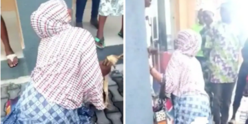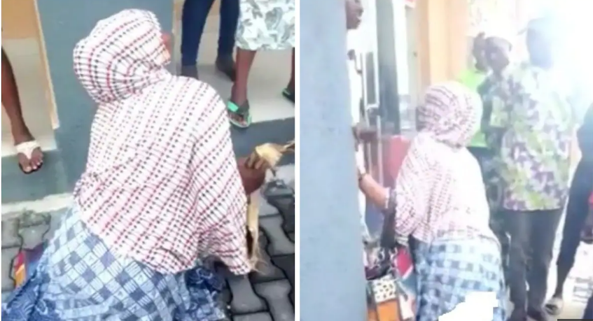 The video which has been circulating the internet, shows the unidentified woman profusely pleading after she was caught stealing stockfish in Lagos. In the video, she is seen holding the large preserved fish while begging the woman believed to be the owner of the stolen goods as a small crowd of shocked and angry people stand by watching the whole display.