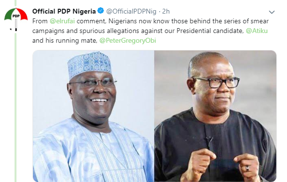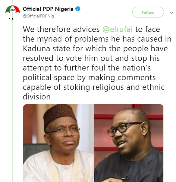 The PDP had in a statement warned El-Rufai to focus on the problem in his state and leave its presidential candidates alone.