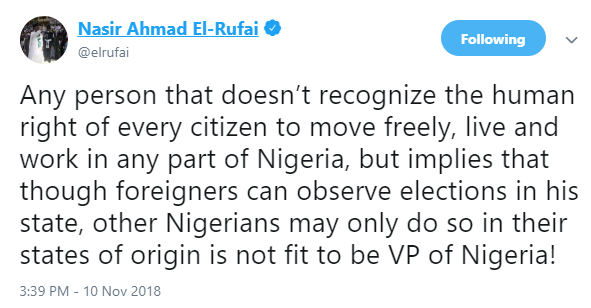 Another related topic; Tribal Bigot: Senator Shehu Sani drags Nasir El-Rufai over comment about PDP Vice Presidential candidate, Peter Obi
