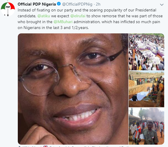 The PDP had in a statement warned El-Rufai to focus on the problem in his state and leave its presidential candidates alone.