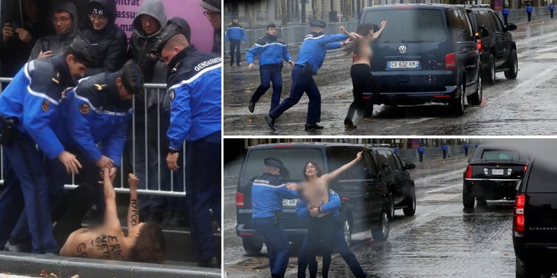 “FEMEN activists ‘welcomed’ the cortege of @realDonaldTrump twice on his way to Arc de Triumph,” she tweeted.