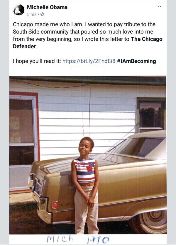 “Chicago made me who I am. I wanted to pay tribute to the South Side community that poured so much love into me from the very beginning, so I wrote this letter to The Chicago Defender. I hope you’ll read it #IAmBecoming” she captioned the post. Read her tribute below.