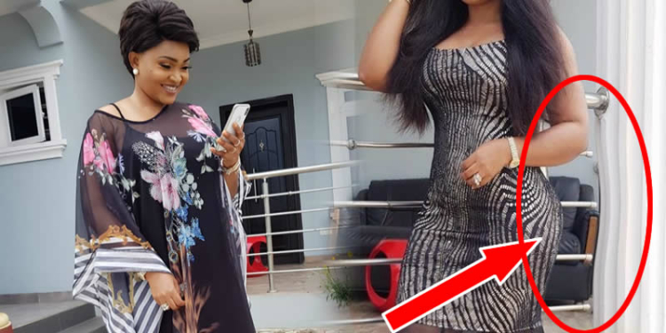 Mercy Aigbe has suffered a photoshop fail which was detected by fans when a pillar was disfigured in the process.
