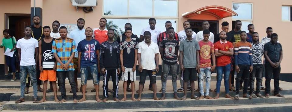 The suspected cyber criminals who are between 19 and 37 years of age include: twenty-three students of Olabisi Onabanjo University, out of which nine were ladies who allegedly claimed to be girlfriends and or neighbours of some of the suspects; one from the National Open University of Nigeria and twelve others are non-students.