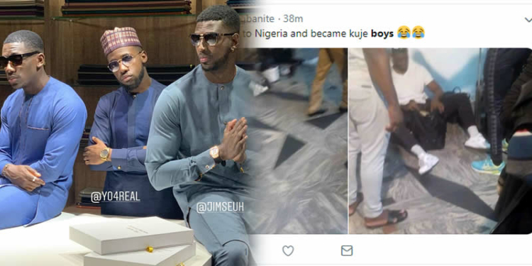 Popular Instagram celebrities, Kupe Boys have reportedly been turned to ‘Kukere boys’ by ‘Nigerian condition’, as they were reportedly spotted sitting on the floor at a Nigerian airport.