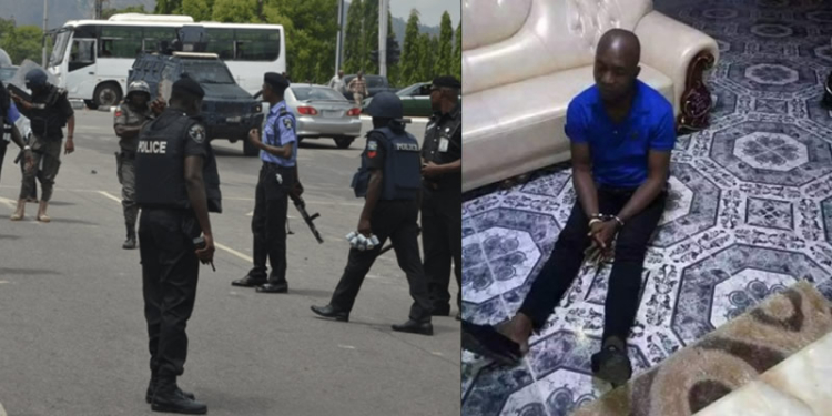 Eneh was reportedly arrested in Enugu on Wednesday around 1 a.m by operatives of the State CID Awka, and driven to Aguleri in Anambra to Chinedu Obidigwe’s house in a Toyota Sienna and three hilux vans where he was handcuffed and humiliated as seen in photos below.