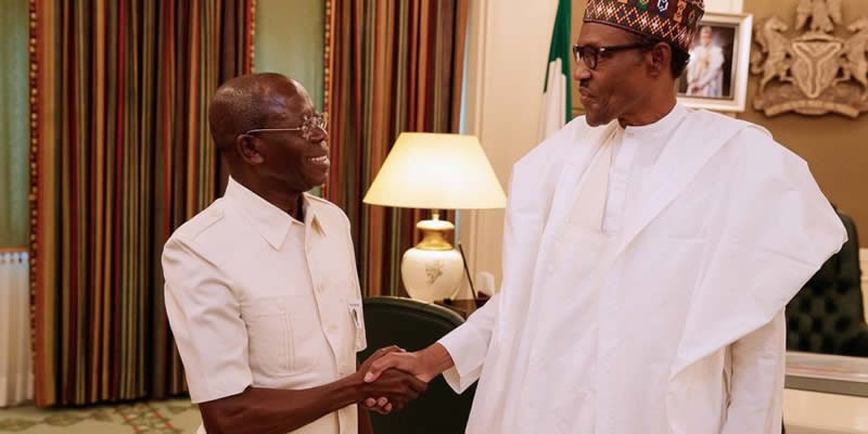 President Muhammadu Buhari and the National Chairman of the All Progressives Congress (APC), Adams Oshiomhole on Friday met behind closed doors at the Presidential Villa, Abuja.