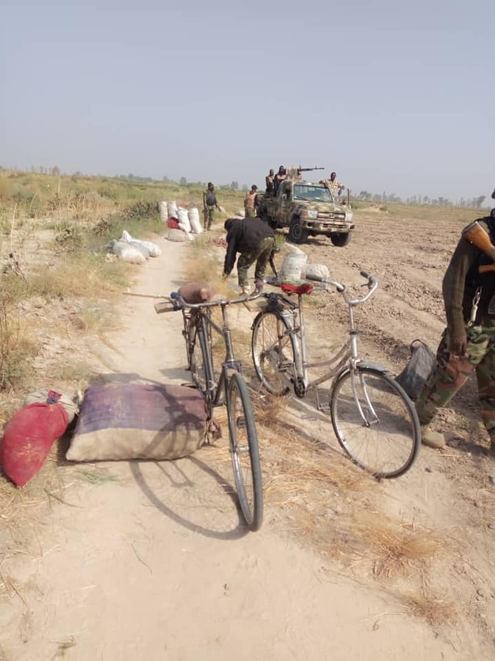 While one of the Boko Haram terrorists was killed by the soldiers who ambushed them, the rest reportedly fled and left behind 2 bicycles and several bags of harvested onions as can be seen in the pictures below;