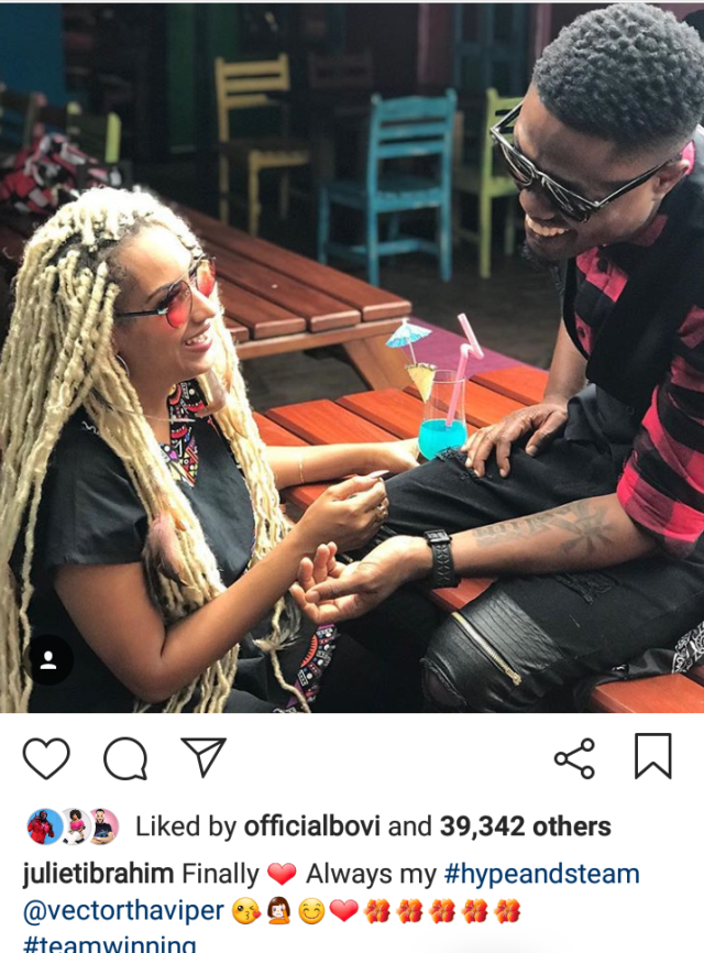 The duo recently posted the same photo of themselves on their respective Instagram pages. Though it could be for a project, it’s Juliet’s responses to comments which have many believe there is more to it.