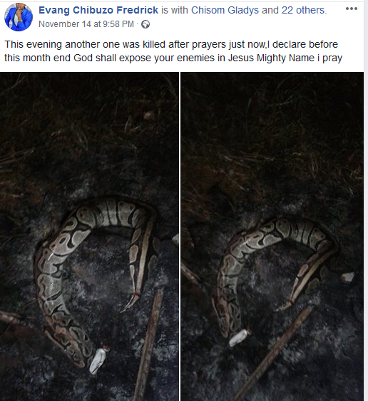 Posting photos of the fighting snakes, the clergyman wrote