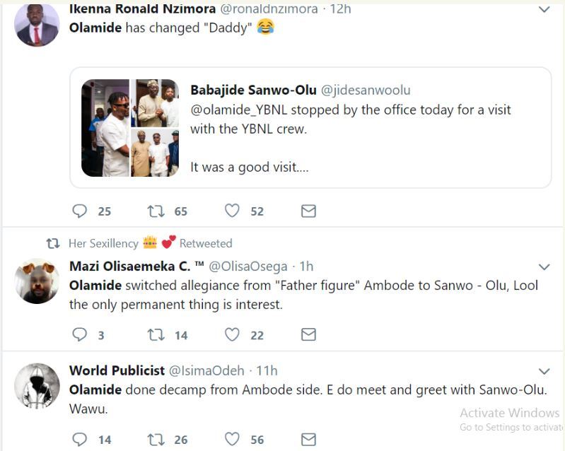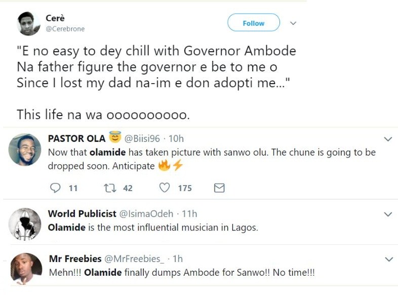 However, Nigerians have reacted to this because Olamide was at the forefront of supporters during Ambode’s bid to become Governor of Lagos in 2015. He even featured in some of the Lagos State Government advertorials on TV in which he chorused the name of Ambode like his life depended on it.
