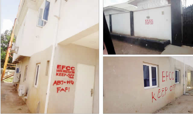 The sealed properties were marked with red ink and had written on them: “EFCC under investigation KEEP OFF ABJ-HQ FAFI.”