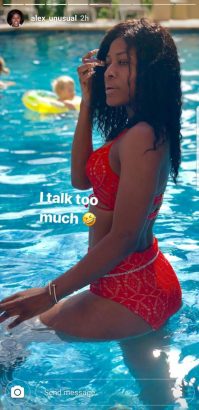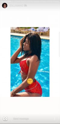 She recently took to her InstaStories to share kinky new photos of herself donning a red bikini as she hits the swimming pool.