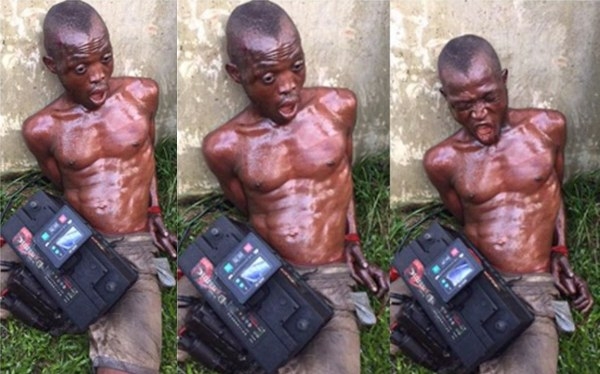 It was reported earlier this year, that an alleged generator thief was apprehended and beaten mercilessly in Rumuodara Port Harcourt, the capital of Rivers State. The man was caught after he went to a business center to steal a generator. He was dealt with and handed over to the police for further action.