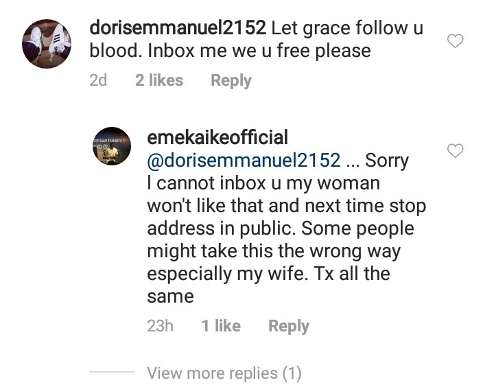 He even went as far as dragging a female follower who was wishing him well. He cautioned her not to send him messages that could upset his woman.