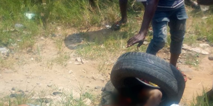 One of the alleged robbers was caught while others escaped. The one caught was beaten mercilessly till he died then was set ablaze.